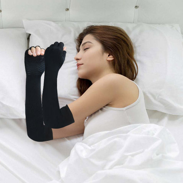 Thanks to the exceptionally soft and breathable material, the sleeves are comfortable enough to wear overnight — they gently release tension while you sleep, so you wake up with noticeably more relaxed and refreshed arms.